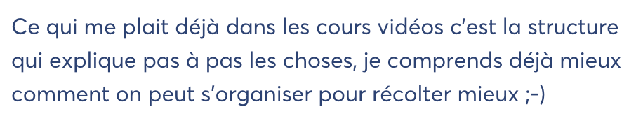 Les vidéos sont conçues dans ce sens. Elles durent maximum 30 minutes, sont accompagnées d’un workbook (avec tableaux, notes, questions, pistes de réflexion…), pour bien adapter les concepts à VOTRE potager et mode de vie.