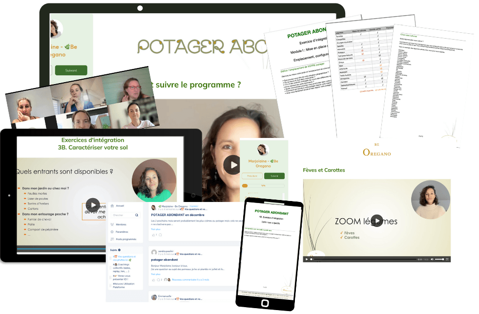 POTAGER ABONDANT est une source inestimable de théorie, de partage d'expérience (+ de 40 vidéos), d'exercicespour vous guider, vous accompagner dans la mise en place de votre potager fluide, résilient et abondant.